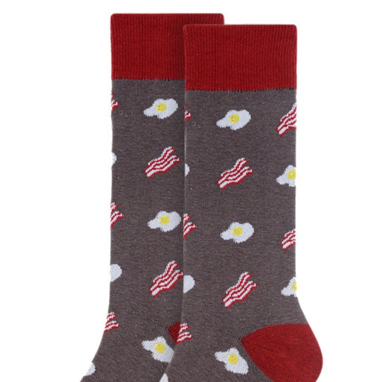 Men's Bacon and Eggs Breakfast Crew Socks - Grey