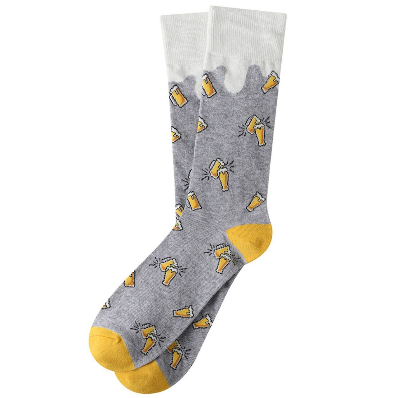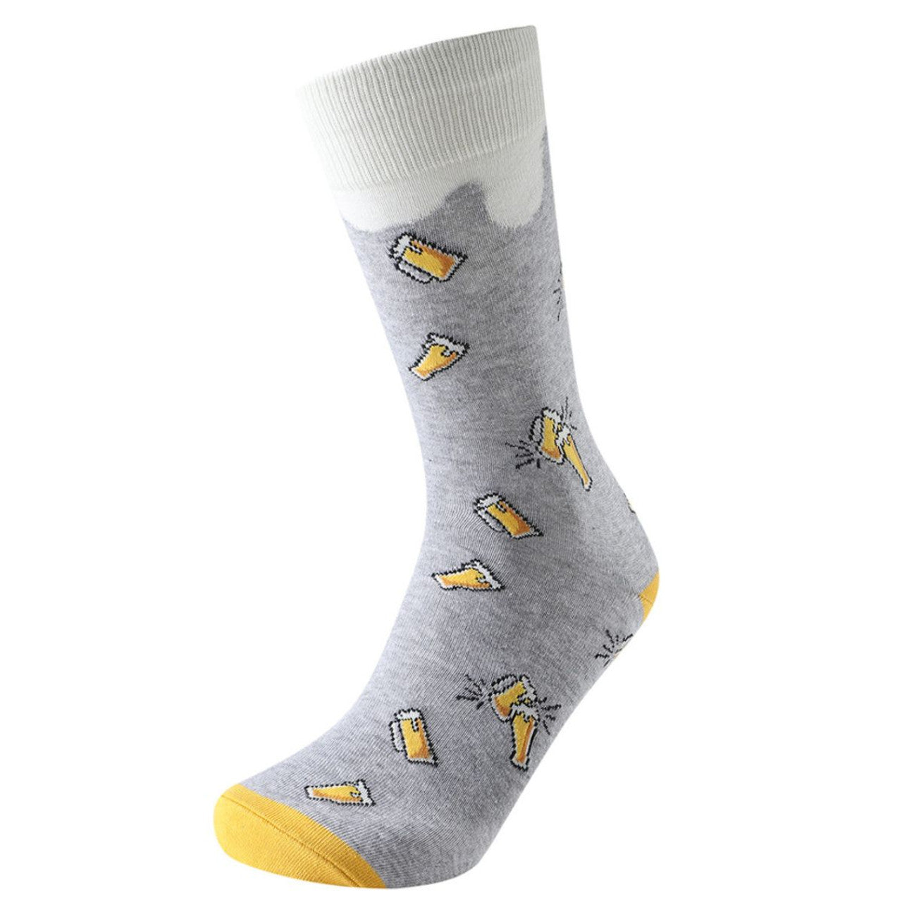 Crack open some style with these men's beer socks! Featuring frothy mugs on a cozy gray background with yellow accents, they’re perfect for beer lovers, brewery tours, BBQs, and game days. A must-have gift for guys who love craft brews and fun socks!