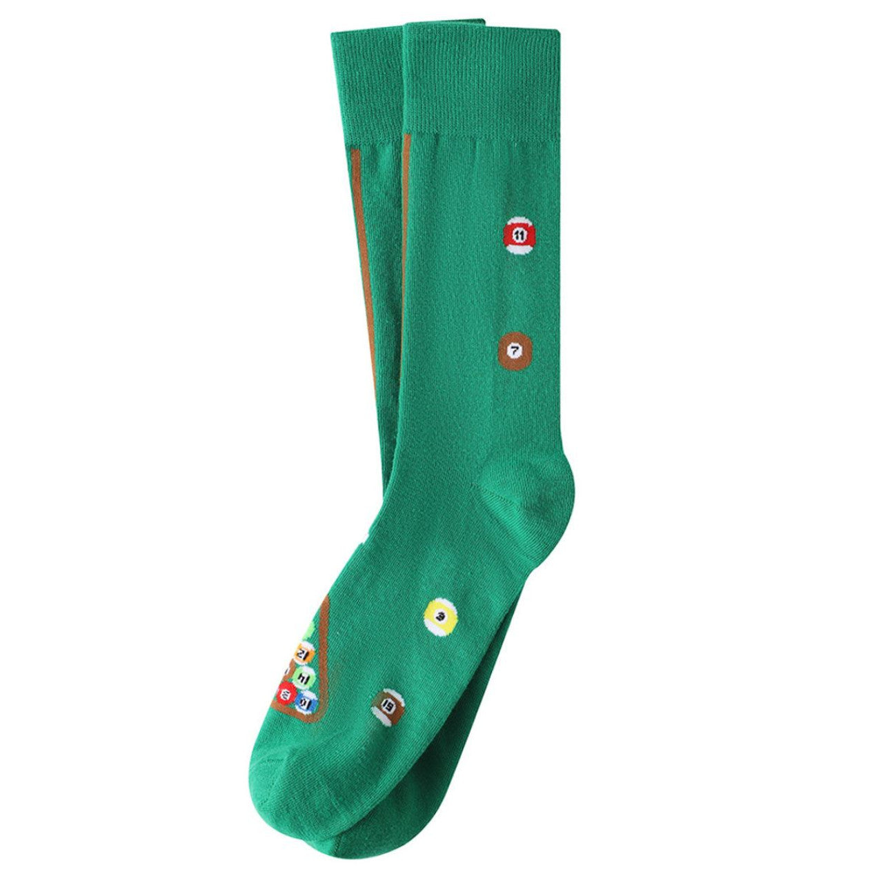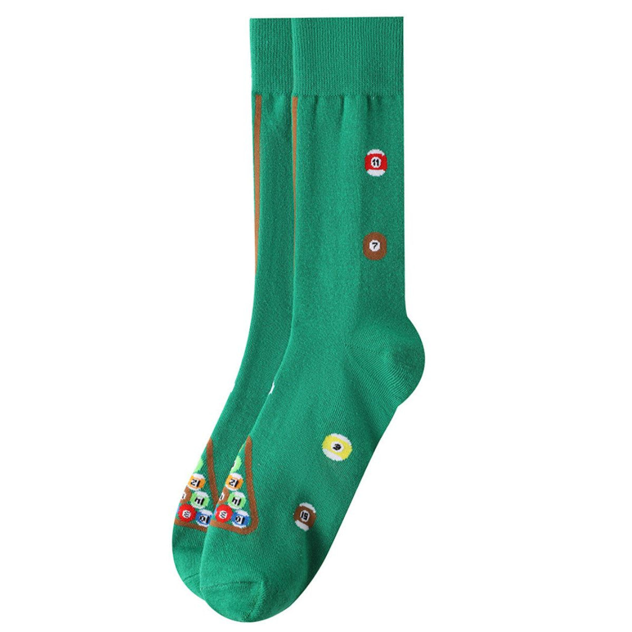 Rack up style points with these men’s billiards socks! Designed with a full pool table setup—cue stick, triangle rack, and colorful billiard balls—these green crew socks are perfect for pool players, bar game lovers, and anyone who lives for game night.