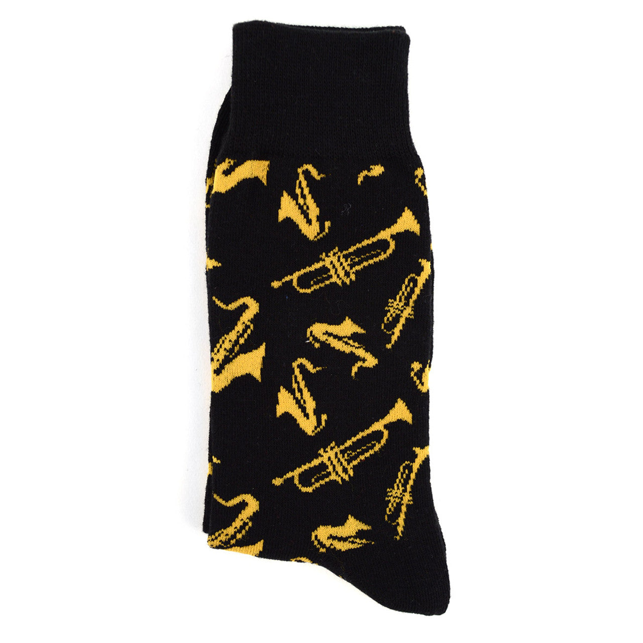 Mens Brass Instrument Saxophone Trumpet Music Socks - Black