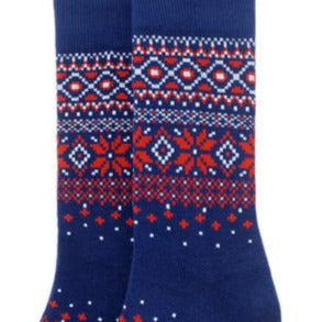 Men's Fair Isle Nordic Crew Socks feature a classic snowflake design, perfect for adding festive style during the holiday season. These lightweight socks bring a seasonal touch to any outfit, ideal for casual wear or business attire. A thoughtful holiday gift for men who appreciate timeless winter patterns.