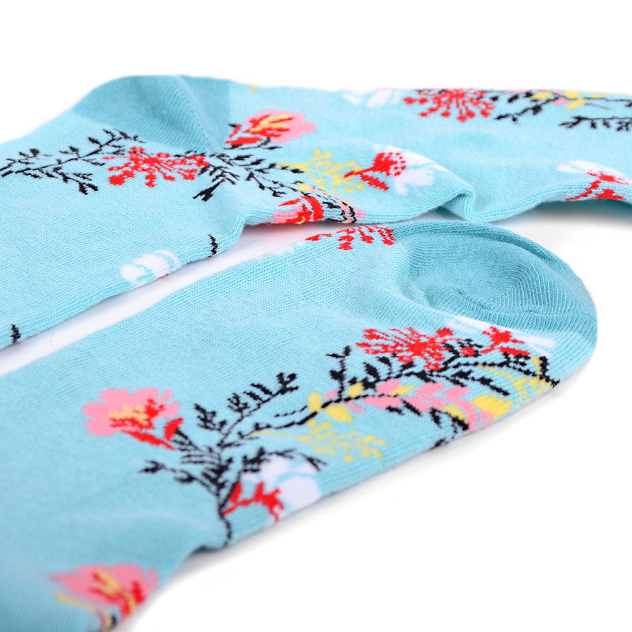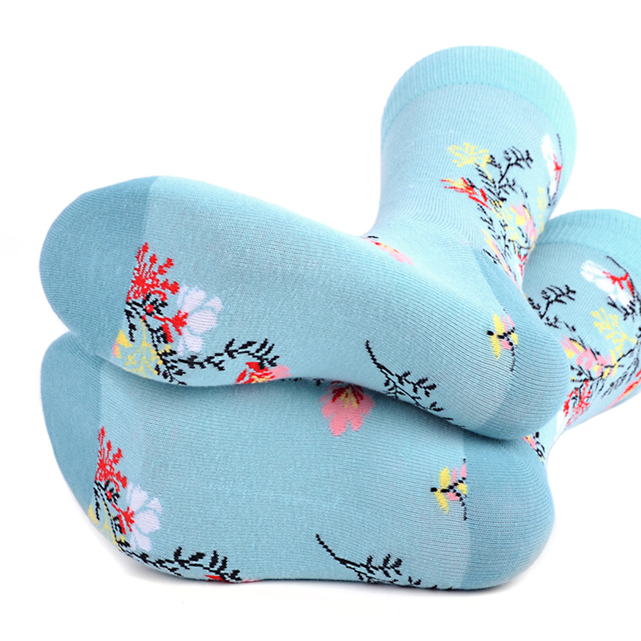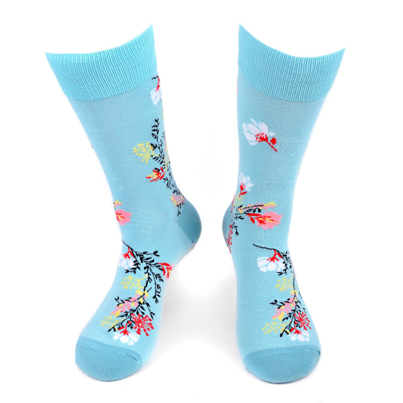 Brighten your wardrobe with these Men's Floral Socks, a burst of color in a serene blue with a colorful botanical patterns. Perfect for the modern man who appreciates a pop of color and a floral statement, these socks are great for both casual wear and dressier occasions. Perfect gift for the fashion-forward individual or a fresh addition to your own collection. These socks will stand out at any social event, from brunches to board meetings. Bring a touch of spring to your step all year round!