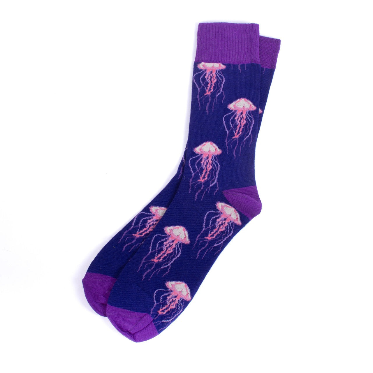 Men's Jellyfish Crew Sock - Ocean Theme Purple