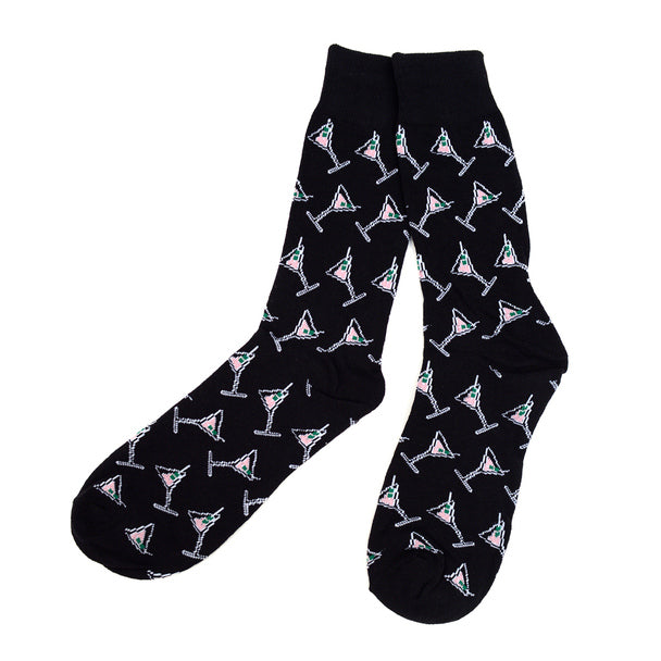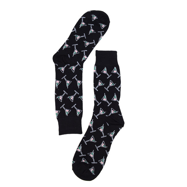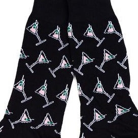 Shaken, not stirred. Raise your glass and cheers to you!! These blue socks with pink, green and white iconic v-shaped martini glasses are the ultimate gift for the man who loves a good martini. Perfect for the office or the swanky party after hours!