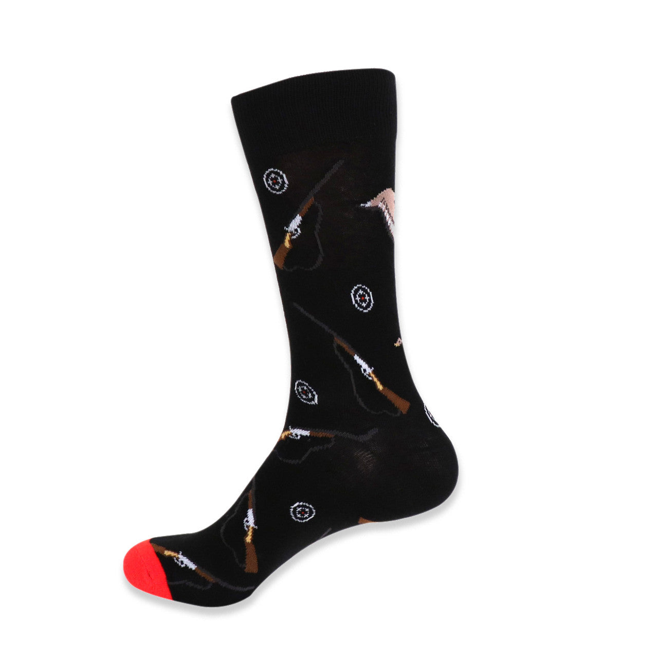Showcase your love of the sport with these fun hunting crew socks. These men's crew socks showing geese, ducks, targets (and more) with a black background are great for for the active outdoorsman. These sporty hunting crew socks are great for work or play or hitting the range. Perfect for the avid sportsman!