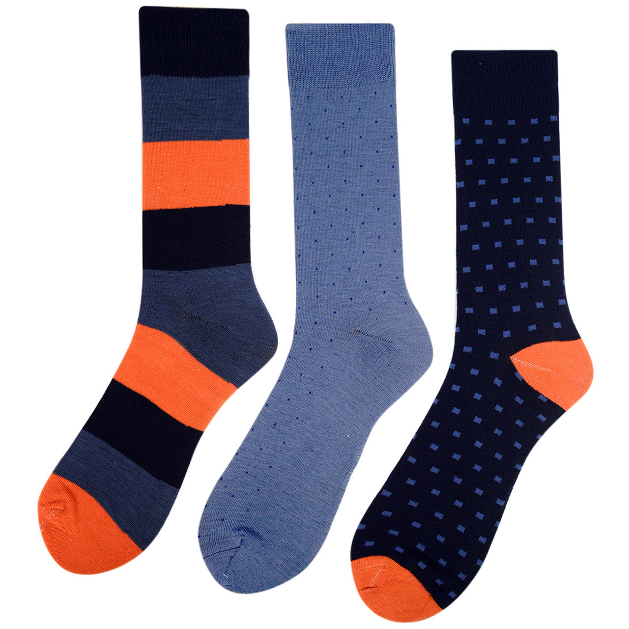 Men's Striped and Dot Crew Socks - Blue and Orange - 3 Pack