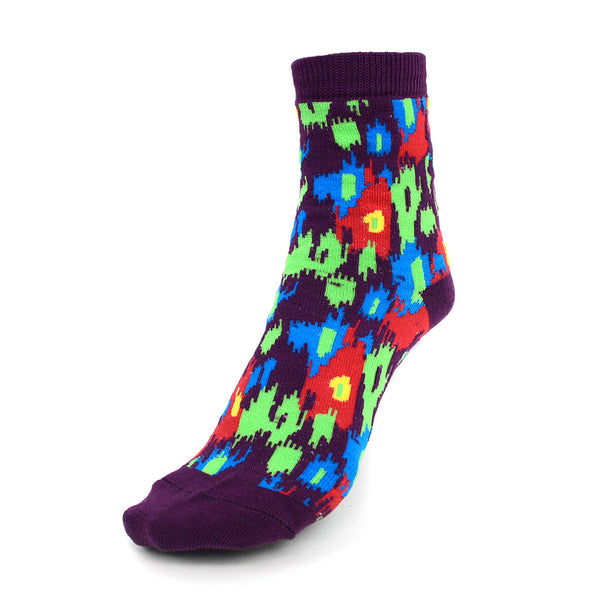 These colorful camo crew socks are perfect for when you have to maintain being a professional but still want to wear cheerful and fun socks! Black, purple and red socks, each with a fun, modern camo pattern.