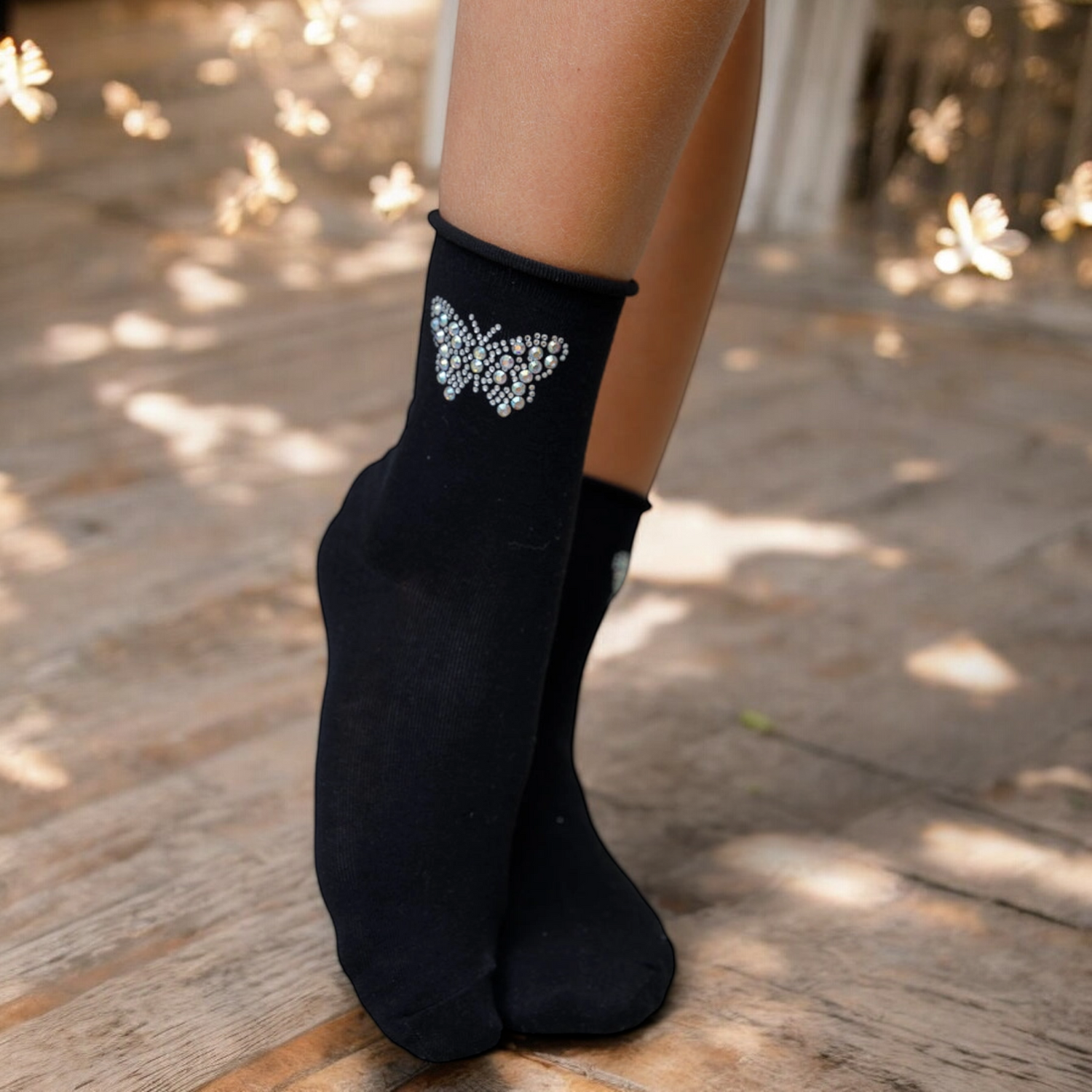 Butterfly Socks for Women - Step into elegance with our butterfly socks featuring beautiful rhinestone details. Perfect for adding a touch of sparkle to your outfit, these socks are ideal for casual wear or dressed-up occasions. Soft, breathable, and designed for all-day comfort, these socks combine style and comfort effortlessly. Flutter your way to fabulous fashion!