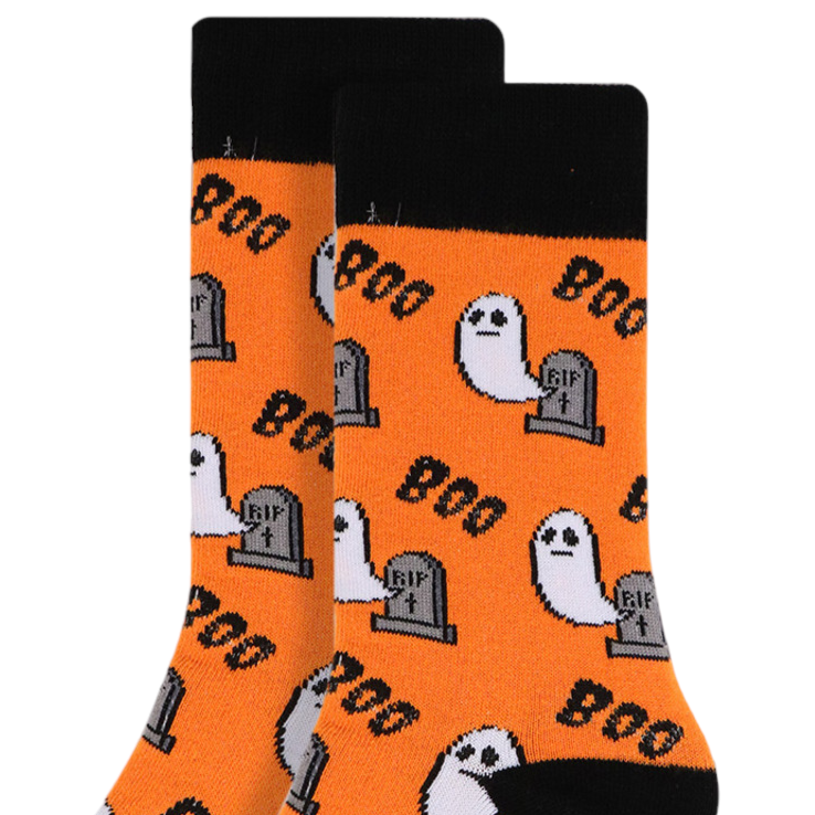 Women's Halloween Socks - Orange Ghost and Spooky Boos