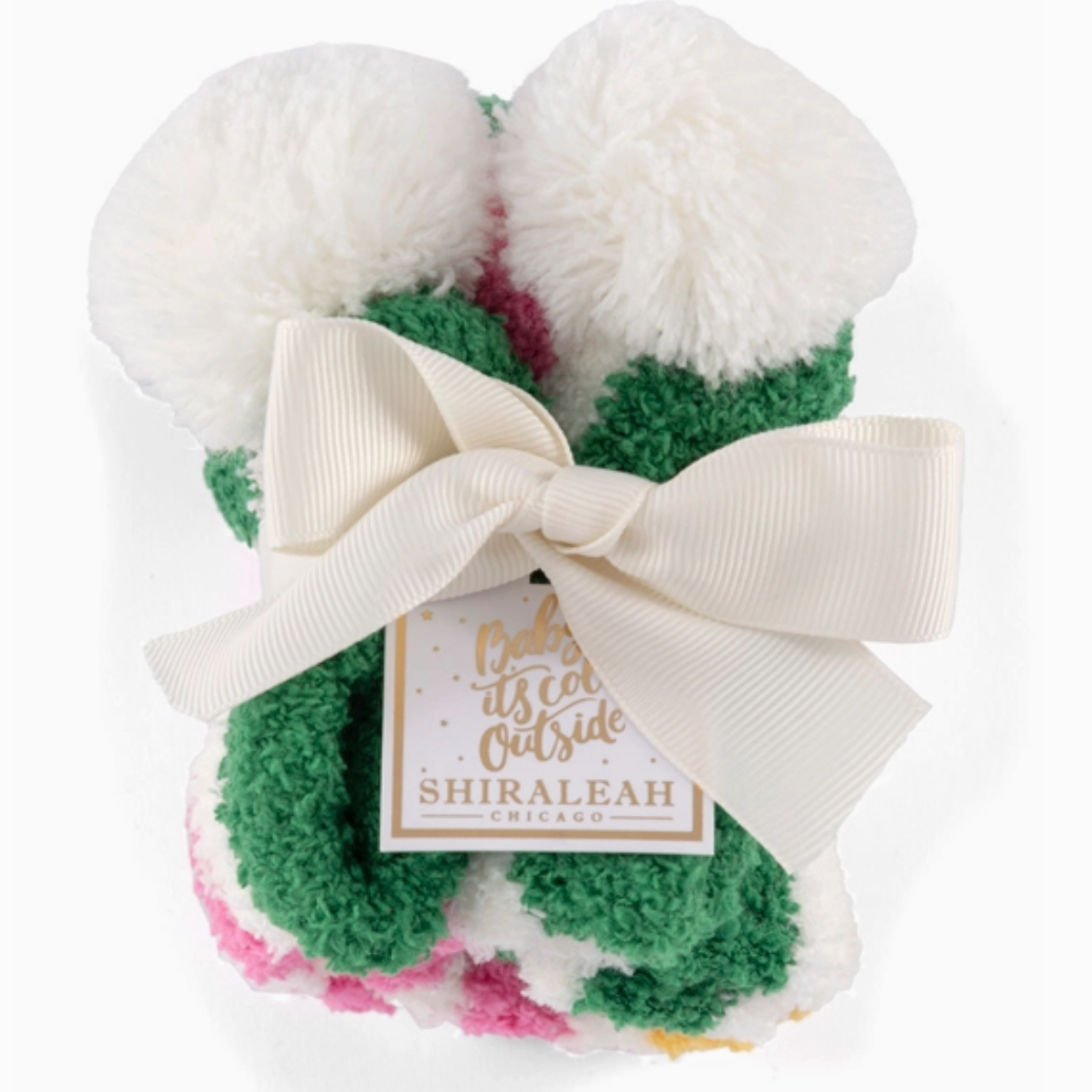Add a pop of color and fun to your loungewear with these striped pom pom grip socks! Featuring cheerful pink, green, and yellow stripes, a fluffy pom pom detail, and cozy fabric, they’re perfect for gifting, lounging, or stuffing stockings. Keep your feet stylish and comfy all winter!
