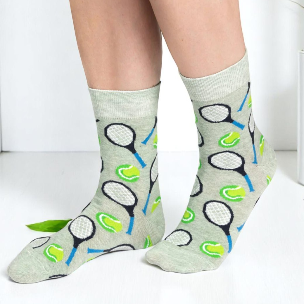 Women's Tennis Socks - Tennis Racquets and Tennis Balls Gray Green